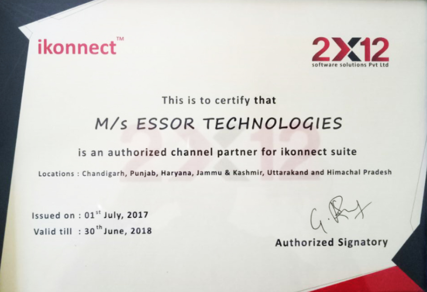 Essor Technologies is an auhorized channel partner for ikonnect suite for locations – Chandigarh, Punjab, Haryana, Jammu & Kashmir, Uttrakhand and Himachal Pradesh.