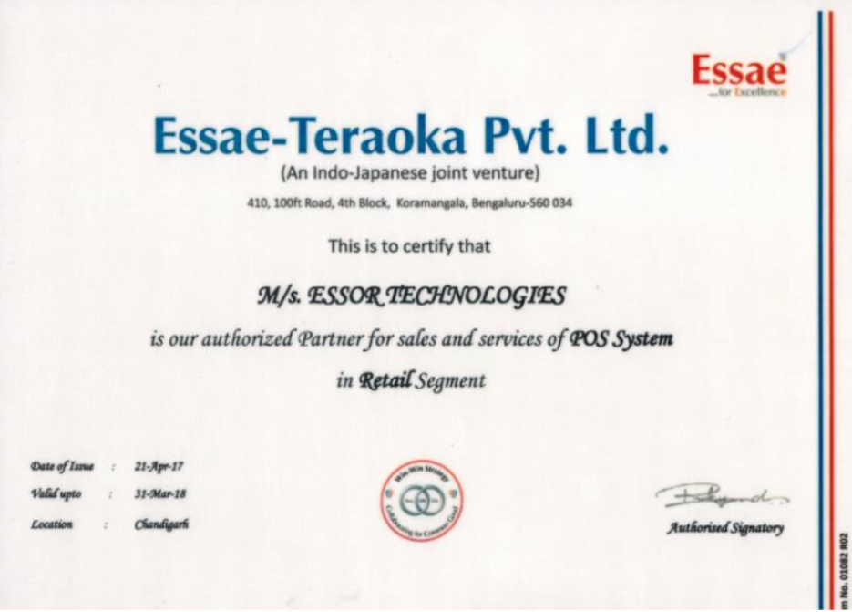Essor Technologies is authorized distributor of Essae Teraoka POS products for Punjab area.