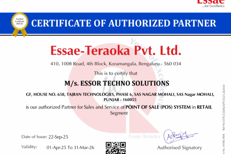 Essor Techno Solutions is now authorised partner for Sale and service of Essae POS Products. For any kind of purchase and enquiries, feel free to contac us at 99888 26612