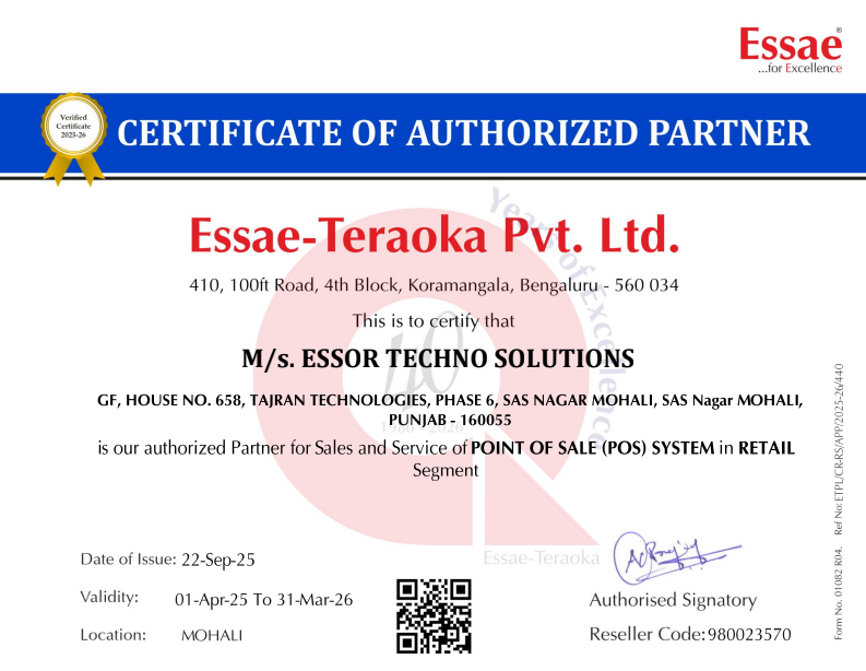 Appointment as Authorised Distribitor for Essae POS Products